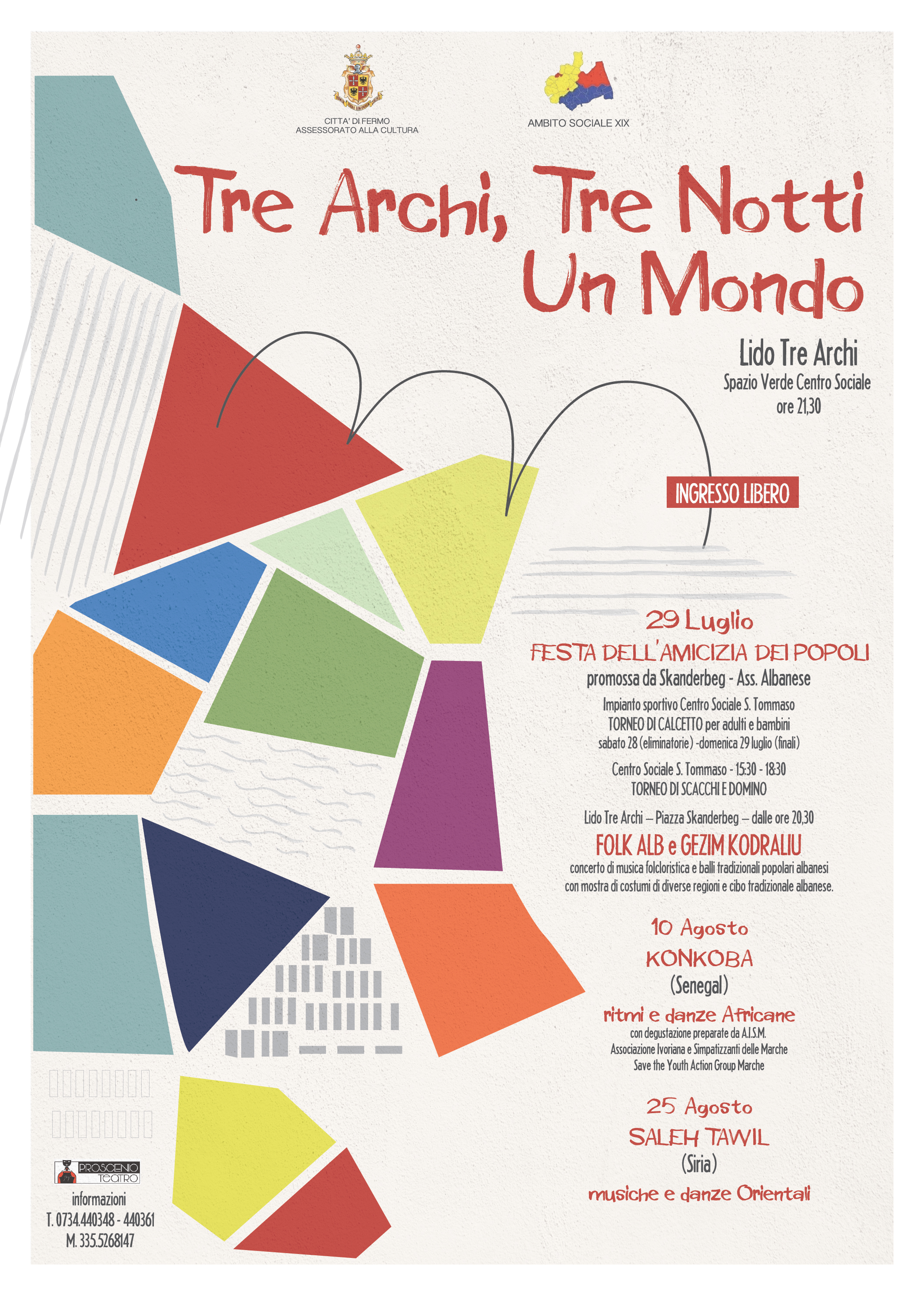 L' Assessorato alla Cultura di Fermo e L' Ambito Sociale Territoriale XIX hanno organizzato e promosso tre serate a Lido Tre Archi in cui si rappresenterà un momento importante di unione che porterà alla luce il lavoro e la bellezza delle diverse Associazioni, dei residenti, dei ragazzi del Doposcuola di Lido Tre Archi e dei professionisti che vi operano.
