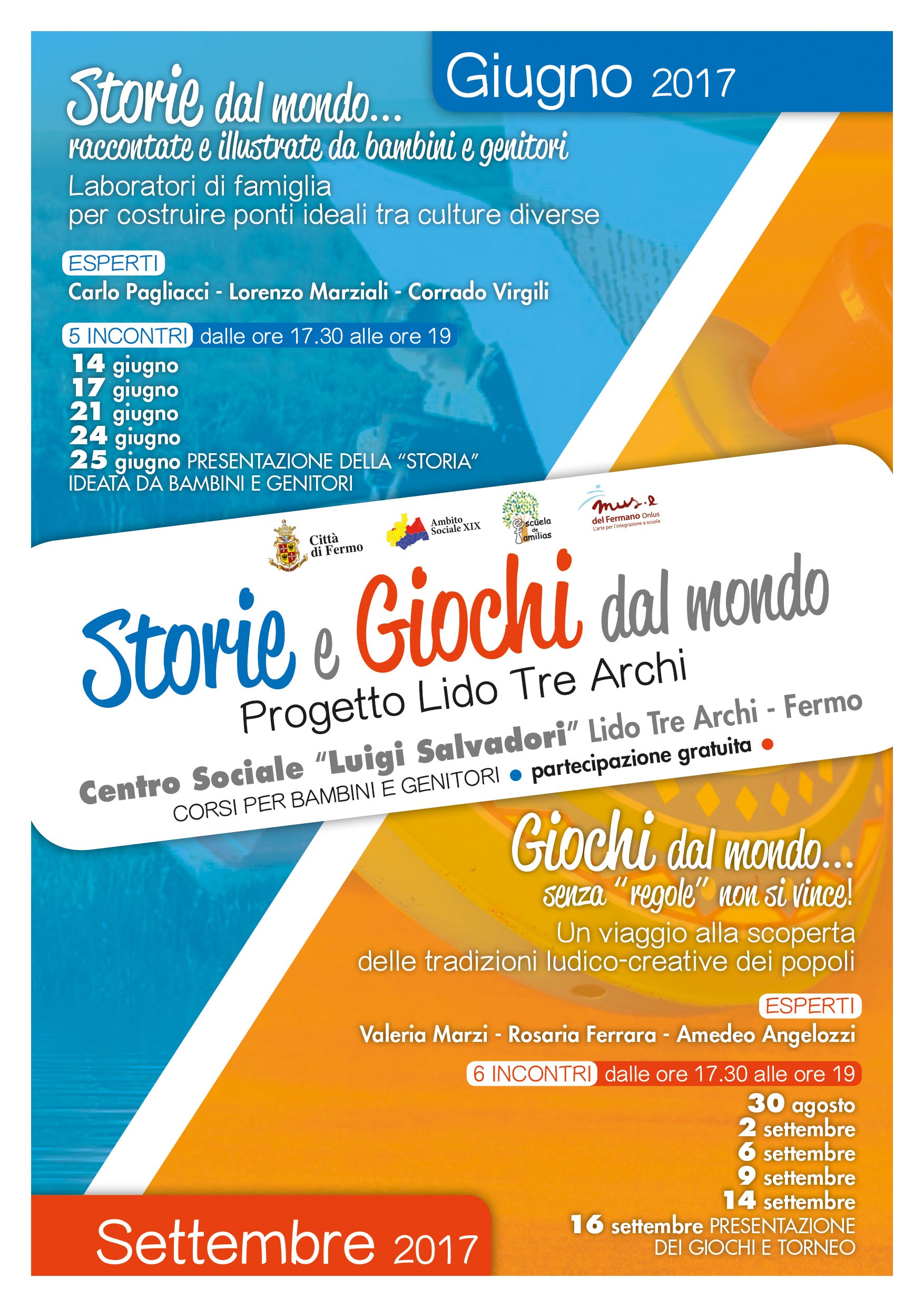 Il comune di Fermo, L'Ambito Territoriale Sociale XIX, Escuela de Familias e l'Associazione Mus-e del fermano organizzano "Storie e Giochi dal mondo" Laboratori di famiglia per costruire ponti ideali tra culture diverse, all'interno del Progetto Lido Tre Archi.