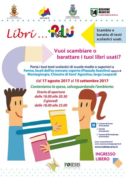 Porta i tuoi testi scolastici di scuole medie o superiori a Fermo, locali dell'ex mercato coperto (Piazzale Azzolino) oppure a Montegiorgio, Chiostro di Sant'agostino, largo Leopardi